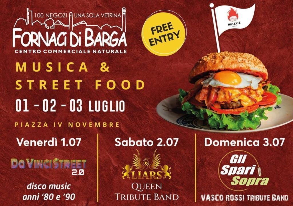 Si inizia a Fornaci dove si terrà lo Street Food Festival, dal 1 al 3 luglio. A Fornaci, in Piazza IV Novembre e dintorni tanti “food truck” per godersi all’aperto ed in tutta sicurezza tante specialità regionali, nazionali ed internazionali del cibo di strada. Nelle tre serate negozi aperti nel centro commerciale naturale.