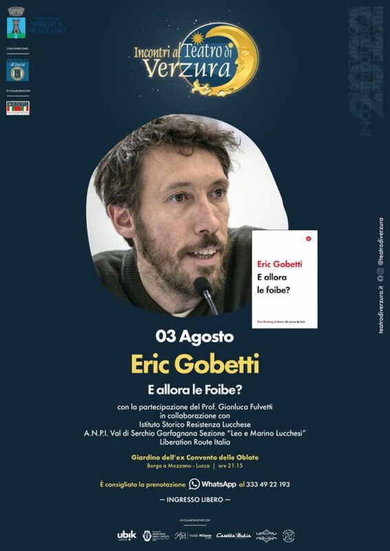 BORGO A MOZZANO – La sezione ANPI Val di Serchio – Garfagnana in collaborazione con il teatro di Verzura ed il Comune di Borgo a Mozzano propone per mercoledì 3 agosto alle ore 21:00 un incontro con Eric Gobetti ed il suo libro “E allora le foibe?”