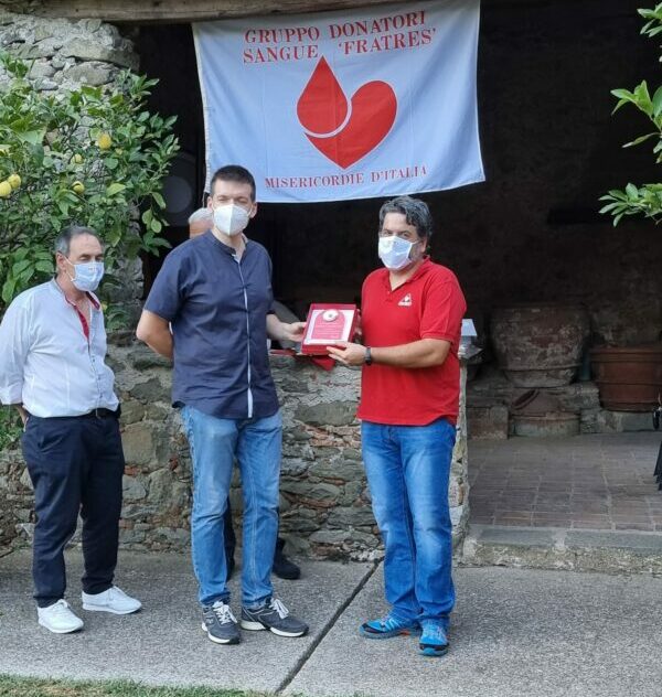 BORGO A MOZZANO – Il 16 luglio il gruppo Fratres di Borgo a Mozzano ha festeggiato i 50 anni di attività (in realtà sono 52 ma la festa era stata rinviata causa covid). Durante i festeggiamenti, dopo la celebrazione della S. Messa, presso il convento Francescano di Borgo a Mozzano, i rappresentati dei consigli Nazionale, Regionale e Territoriale Fratres hanno consegnato al Presidente del gruppo Juri Frugoli una targa ricordo per l’importante traguardo raggiunto. Da parte del Raggruppamento Territoriale Media Valle del Serchio dei Fratres, sottolinea nell’occasione il presidente Giovanni Dinelli: “E’ doveroso fare un plauso particolare anche al Governatore della Misericordia di Borgo a Mozzano Gabriele Brunini, per il suo importante contributo, insieme alla Misericordia, per crescita e il raggiungimento di questo traguardo da parte del gruppo Fratres; siamo fiduciosi, anzi certi, che la collaborazione proficua tra i due gruppi di volontariato continui nel tempo- Per tutto questo gli facciamo un ringraziamento particolare.”