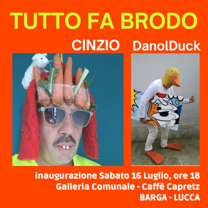 Da sabato 16 luglio la Galleria Comunale e il vicino Caffè Capretz ospiteranno la mostra personale di CINZIO “TUTTO FA BRODO”. In questa piccola mostra antologica CINZIO presenta una selezione di opere che partono dalla fine degli anni ‘90 fino ad arrivare ai giorni nostri: un percorso trasversale che parte dai lavori di interferenza culturale fino alle opere pittoriche più recenti. Ecologia e pratiche sostenibili, la cultura popolare sono alcuni degli ingredienti principali di questo percorso.