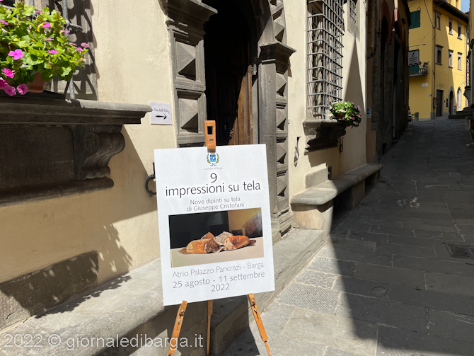BARGA – 9 impressioni su Tela. Si intitola così ed il titolo racchiude in effetti il contenuto della esposizione, la mostra che sta proponendo il barghigiano Giuseppe Cristofani, per decenni alla guida insieme alla moglie Laura del Caffè Capretz e ora della tabaccheria che si trova in Piazza Salvi.