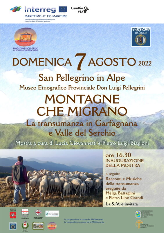 Domenica 7 agosto 2022 alle 16,30 al Museo etnografico provinciale Don Luigi Pellegrini di San Pellegrino in Alpe (Castiglione di Garfagnana) si inaugura la mostra a cura di Lucia Giovannelli e Pietro Luigi Biagioni “Montagne che migrano. La transumanza in Garfagnana e Valle del Serchio”