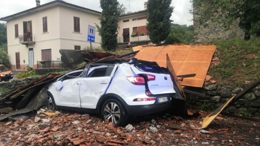 FORNACI – Il violento temporale con forte vento che si è abbattuto sulla zona ha fatto danni a Fornaci. Il tetto di un manufatto è stato scoperchiato dalla forza del vento con la copertura che si è abbattuta sulla SR445 nella zona delle case operaie colpendo anche una auto. Un paio i feriti che si spera non siano gravi. Sul posto l’auto medica del 118 ed un paio di ambulanze della Misericordia. La strada risulta chiusa al traffico.