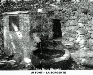 Qui ci si ferma sotto il porticato della chiesina e raccontiamo ciò che conosciamo circa la storia di questo edificio, aiutandoci con un libricino pubblicato nel 2004 da Dario Giannini. (2) Leggendolo ecco che si apprende che l’anno 1904, la vecchia Chiesina di Fonti, si pensa ridotta in malo modo, fu obbligo rifarla e si dice che fu dotata, se già non lo era prima, di un piccolo porticato sul fronte, con due sedili di pietra e dentro un altarino per celebrarvi la Messa. Recita una targa posta sulla chiesina: