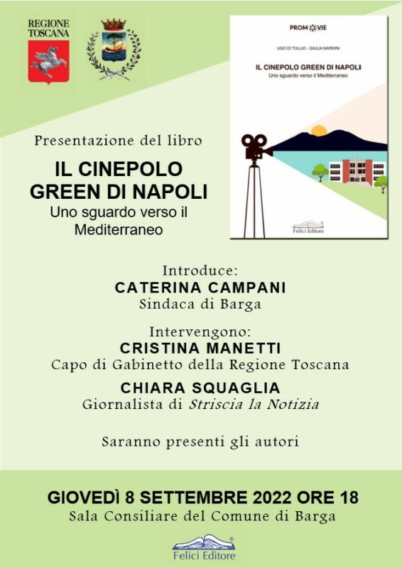BARGA – Giovedì 8 settembre, alle ore 18, nella sala Consiliare di Palazzo Pancrazi in Barga si terrà la presentazione del libro “Il Cinepolo Green di Napoli. Uno sguardo verso il Mediterraneo”, scritto da Ugo di Tullio, docente all’Università di Pisa, e da Giulia Nardini di Barga.