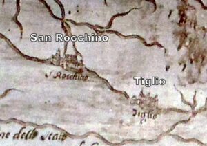 A questa citazione della località San Rocco o San Rocchino va detto che ora, seguendo l’indicazione del nostro Merrighi, saremmo arrivati a Tiglio Basso, nome già esistente nel solo Tiglio, ma su certe carte non osservato come tale, per esempio in quella che abbiamo già citato del secolo XVIII, attuata tra i 1700 e 1750. Perché San Rocchino è facile capirlo, infatti, qui c’era una chiesetta, probabilmente edificata nel corso del sec. XVI o inizi del successivo, dedicata al culto del Santo, che come oggi era molto venerato nel territorio di Barga sin dal 1479, anno di peste. Vedi su questo sito: Storia del culto di S. Rocco a Barga – Anno 1479 – Sancti Rochi Festivitatis Veneratio, 2008.