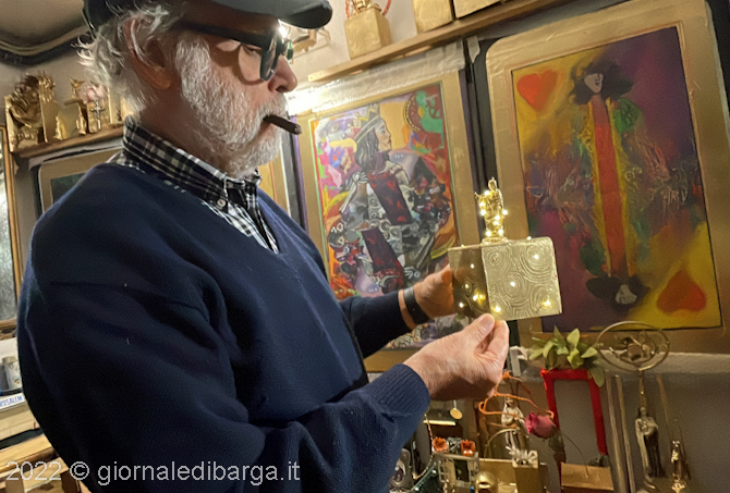 BARGA – Ogni giorno la stessa strada e li stessi gesti: esci di casa con nello zaino la ultima tua “creazione”, fai il breve percorso che da via della Fontana ti porta fino sotto le vecchie mura castellane e lì dove sorge la casa che un tempo fu della indimenticabile “Befana” Evelina Chiesa sostituisci l’immagine che si trova nella mestaina sulla facciata principale. Ogni giorno, per 365 giorni l’anno. Anzi, per 360 perché per 5 sei stato ammalato di covid e non sei potuto uscire di casa. La storia di un anno di Keane, di quella che potremmo definire una lunga installazione artistica, ma che lui, più propriamente, definisce performance. Con tanto di scambi con la fauna locale, gli abitanti dell’antico castello, che ad ogni passaggio con quello zaino tipo Invicta, tipo tempo di scuola anni ’80, gli gridano allegramente se sta andando a scuola o giù di lì, ma che sanno benissimo che il Keane ne ha inventata un’altra delle sue e che, da trenta e più anni a questa parte, non perde occasione per descrivere il costume, la cultura, la tradizione, l’essenza di Barga e di tutto quello che le sta attorno. Lo fa a suo modo, con una osservazione che arriva fin nel profondo di tante piccole, grandi cose. Che spesso si danno per scontate fino a quando lui non le fissa o le racconta nelle sue opere ed allora assumono un’altra dimensione.