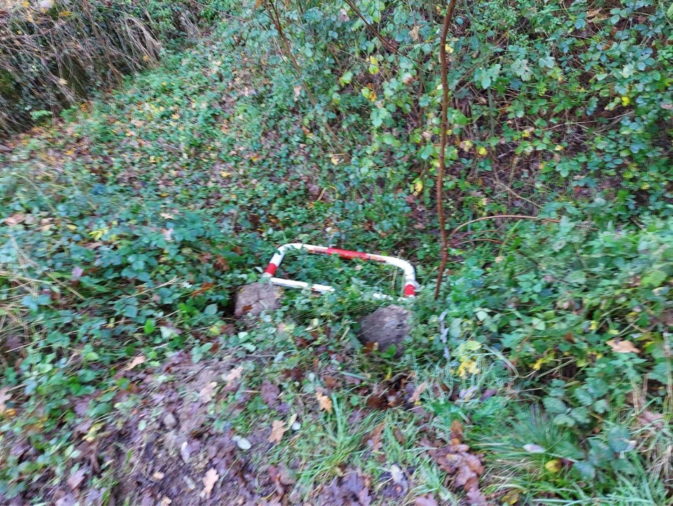 Crediamo sia un atto vandalico, in quanto le transenne sono state abbandonate lungo la riva del torrente.