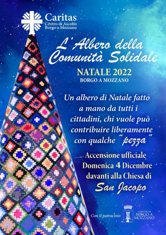 BORGO A MOZZANO – Un albero di Natale che parla di solidarietà, di coesione, di unione e di comunità: è quello che i tanti, tantissimi cittadini di Borgo a Mozzano e non solo stanno realizzando a mano, ai ferri o all’uncinetto. Sono già più di 1200 le “pezze” che formeranno l’albero della comunità solidale, promosso dal centro ascolto Caritas di Borgo a Mozzano con il patrocinio del Comune di Borgo a Mozzano: l’albero sarà acceso domenica 4 dicembre sul sagrato della chiesa di San Jacopo dal sindaco Patrizio Andreuccetti e da Don Francesco Maccari. Un vero e proprio progetto comunitario, costruito con lo sforzo e il contributo di tutti che diventerà, nel periodo natalizio, un luogo dove esercitare la solidarietà.