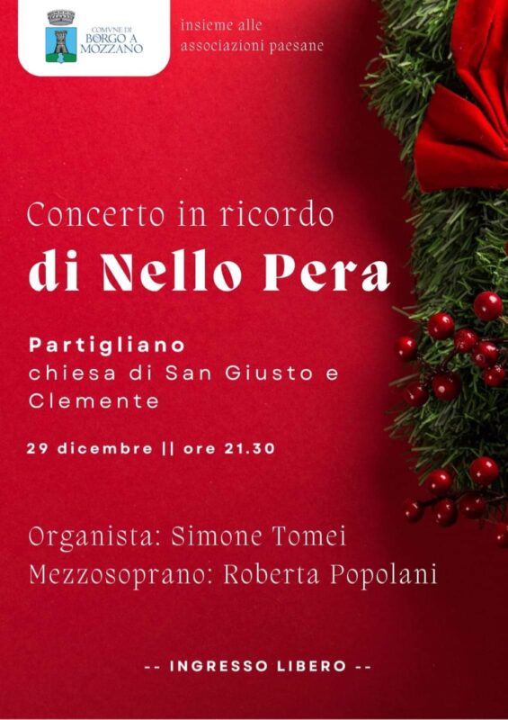 BORGO A MOZZANO – Nella chiesa di San Giusto e Clemente a Partigliano il 29 dicembre alle 21,30 un concerto in ricordo di Nello Pera.