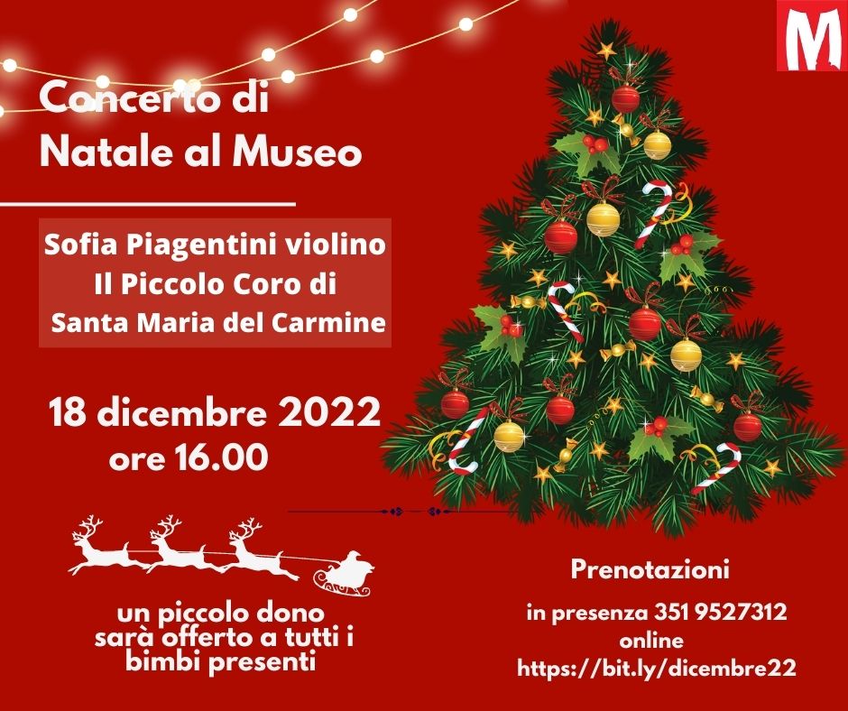 Come è consuetudine del Museo l’anno si chiude con un appuntamento dedicato al Natale e alle festività, celebrate dai brani eseguiti al violino dalla giovane Sofia Piagentini e da alcuni canti meno noti della tradizione natalizia proposti, accanto a brani più conosciuti, da Il Piccolo Coro di Santa Maria del Carmine (tastiera Elena Martinovitch, voci Alessandra Farinelli, Genny Farinelli, Rita Mori e Alda Fontanini). Genny Farinelli e Manola Bartolomei accompagneranno il concerto leggendo alcuni classici della letteratura a tema natalizio. Al termine dell’evento il Museo offrirà un piccolo dono a tutti i bimbi presenti.