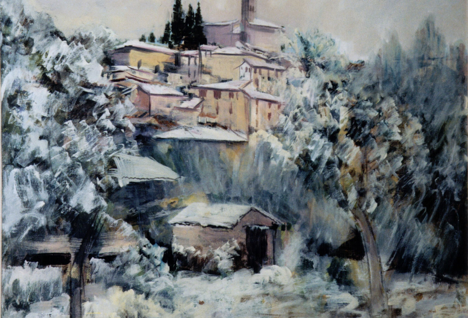 Nel 2009, forse una delle sue più recenti opere, ci invió per il giornale di Barga di Natale questo bellissimo scorcio di Barga innevata, quale suo omaggio alla comunità barghigiana.