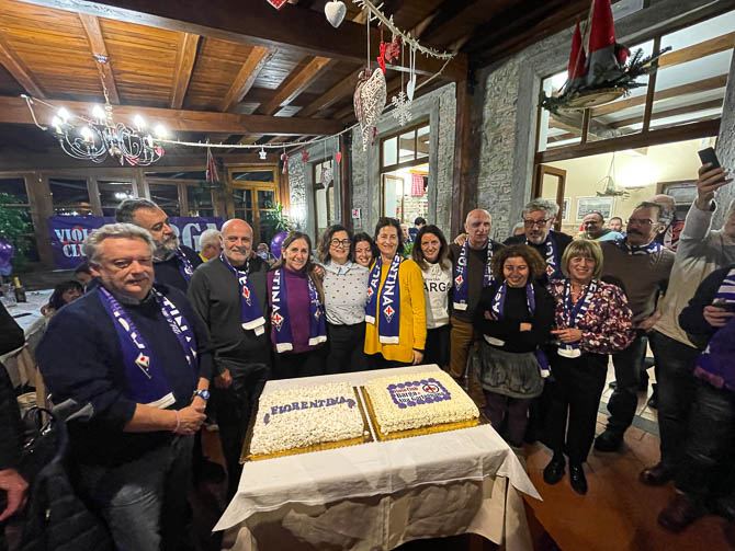 Festa a tinte viola al ristorante Da Orietta di Cerretoli dove si è svolta la cena conviviale del Viola Club Barga e Alta Garfagnana, nato un anno fa dalla fusione dei due club, ma riunitosi per la prima volta per una festa dei soci, dopo la lunga tempesta covid.