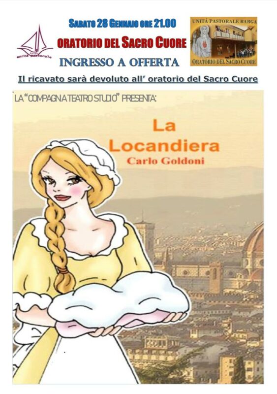 La compagnia Teatro Studio, con il patrocinio della Unità Pastorale di Barga, presenta sabato 28 gennaio alle ore 21, presso l’oratorio del Sacro Cuore (ingresso a offerta) la commedia “La locandiera” di Carlo Goldoni.