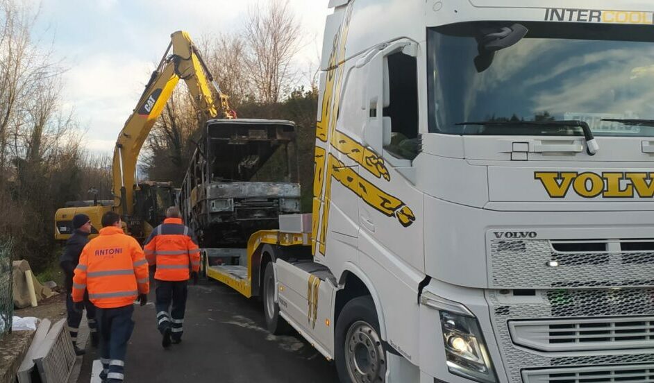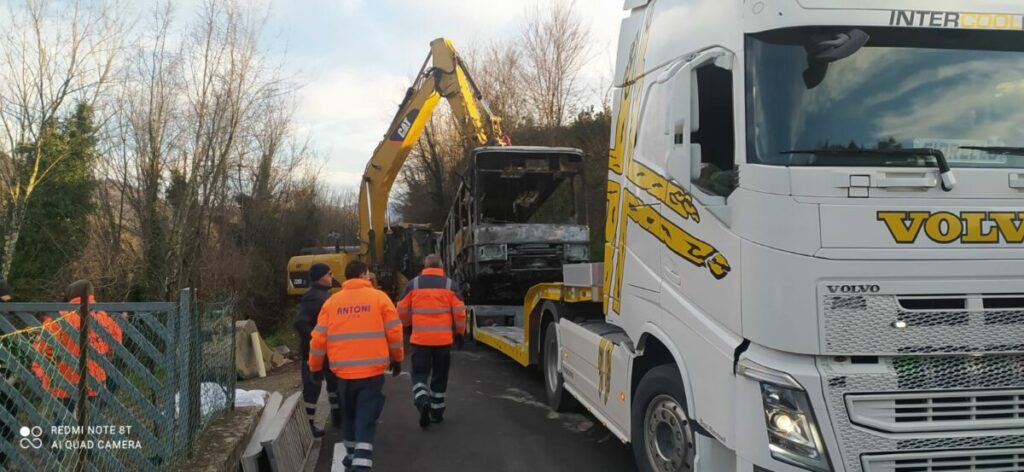 BARGA – Per quanto riguarda la strada provinciale Fornaci – Barga, dopo l’incendio che ha coinvolto due bus del trasporto scolastico, il collegamento riaprirà forse in serata. Così rende noto l’assessore alla protezione civile Pietro Onesti. L’intervento principale di questo pomeriggio è stato la bonifica dell’area dove si è verificato l’incendio a cominciare dalla rimozione delle carcasse e dei detriti rimasti sull’asfalto. Per i due pullman bruciati e per la loro rimozione è stato necessario l’intervento di un escavatore e di due bisarche.