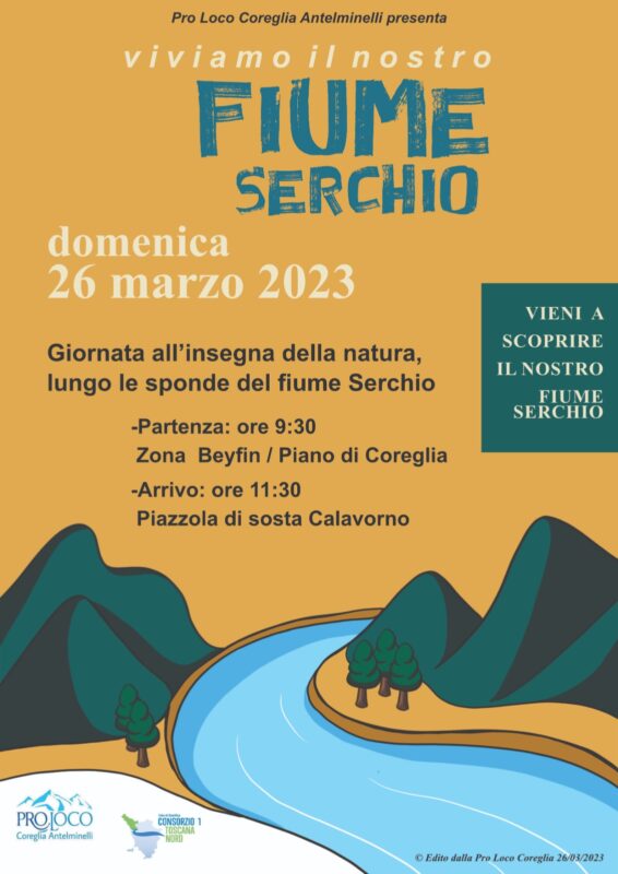 PIANO DI COREGLIA – Viviamo il nostro fiume (liberiamo il Serchio dalle plastiche, dai rifiuti vari). L’appello arriva subito dopo la Giornata Mondiale dell’Acqua dalla Pro Loco di Coreglia e dal Consorzio 1 Toscana Nord che promuovono una eco-giornata di pulizia del fiume per domenica 26 marzo con ritrovo alle 9,30 zona Beyfin a Piano di Coreglia ed arrivo a Calavorno.