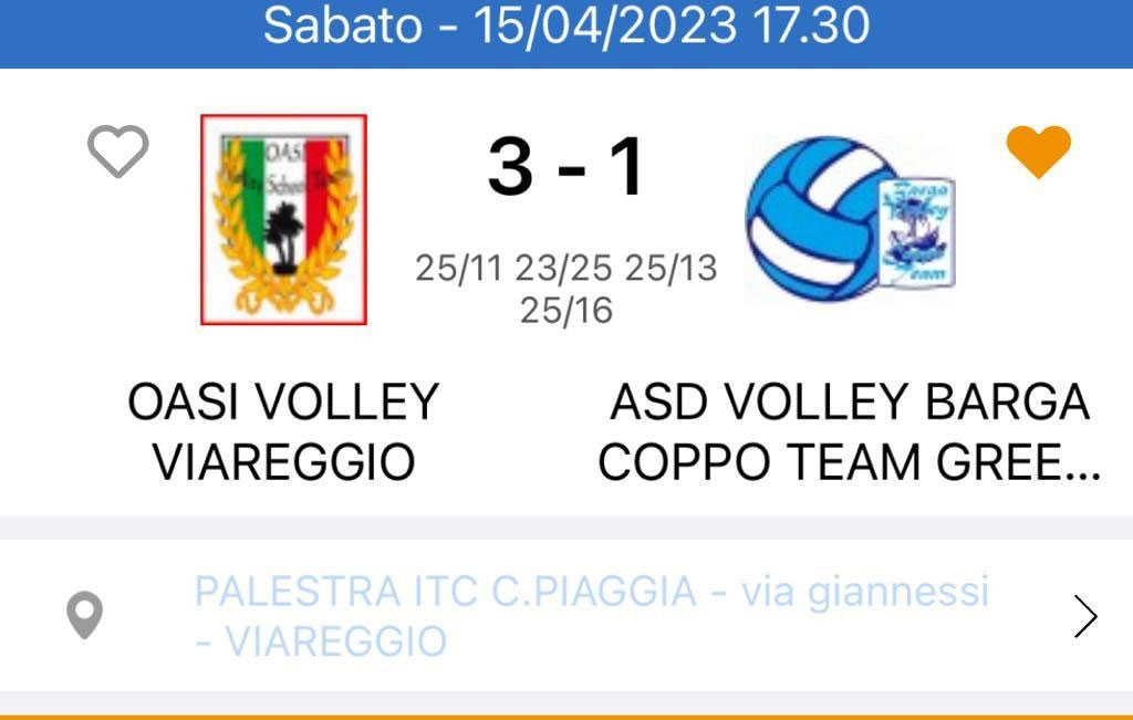 Nel secondo set anche se con fatica riusciamo ad imporci, ma questo non basta a far si che l’Oasi, che raccatta tutto e batte molto bene, si aggiudichi l’incontro per 3-1, lasciandoci un po’ così imbambolate e anche deluse per non aver ripetuto una prestazione all’altezza delle ultime.