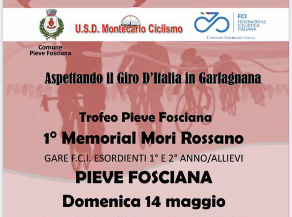 PIEVE FOSCIANA – Domenica 14 maggio l’Usd Montecarlo Ciclismo ed il Comune di Pieve Fosciana, organizzano un importante manifestazione ciclistica agonistica riservata ai giovani delle categorie esordienti 1′ anno (13 anni), esordienti 2′ anno (14 anni) ed allievi (15/16 anni).