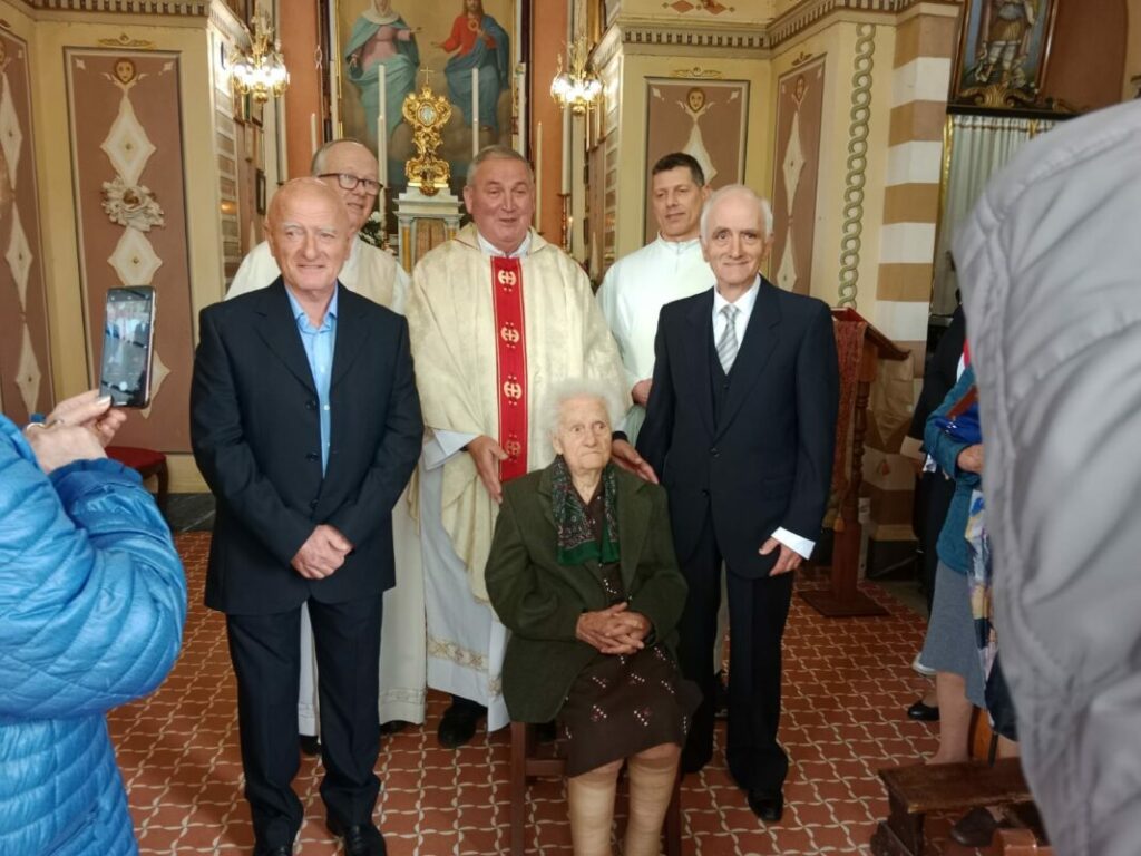 PIEVE FOSCIANA – In un’atmosfera gioiosa ed emozionante ieri primo maggio fra fiori palloncini e biglietti di auguri si è svolta la bella festa di compleanno per i 100 anni di Maria Rosa Pighini nata a Castiglione il 1 maggio 1923. Nella chiesina. di Cima al Margine dedicata alla Madonna, è stata celebrata una Santa Messa di ringraziamento da Don Giovanni Grassi. A portare gli auguri e i saluti dell’amministrazione comunale è stata Annarita Fiori. La banda di Pieve Fosciana l’ha ricevuta all’entrata del ristorante La Lanterna dove è proseguita la giornata in allegria e buon cibo fra parenti ed amici (i figli Ferdinando e Giuliano Raffaelli, la nuora Nadia, nepoti Giovanni , Pamela, Annamaria e pronipoti Greta, Francesco e Mariairene).