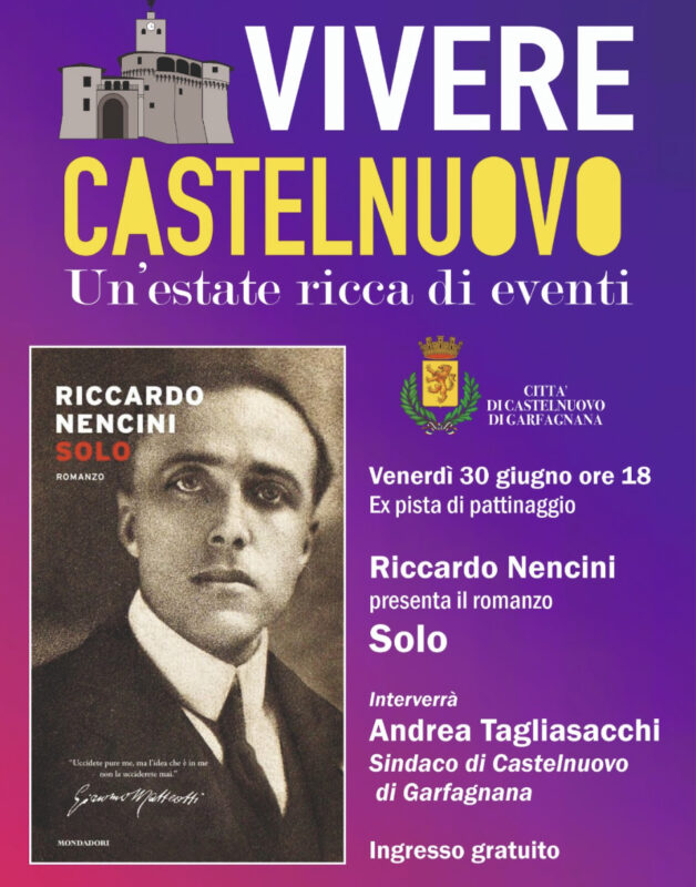 CASTELNUOVO –Venerdì 30 giugno alle ore 18 presso la tensostruttura di Via Vittorio Emanuele a Castelnuovo di Garfagnana, Riccardo Nencini presenterà il romando “Solo”.