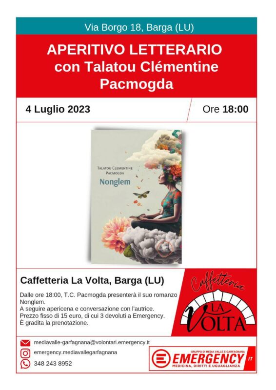 La serata, organizzata in collaborazione con il gruppo locale di Emergency, inizierà alle ore 18 con la presentazione dell’ultimo romanzo della scrittrice, Nonglem. Seguirà un’apericena al prezzo fisso di 15 €, di cui 3 € saranno devoluti a Emergency, durante la quale sarà possibile conversare con l’autrice.