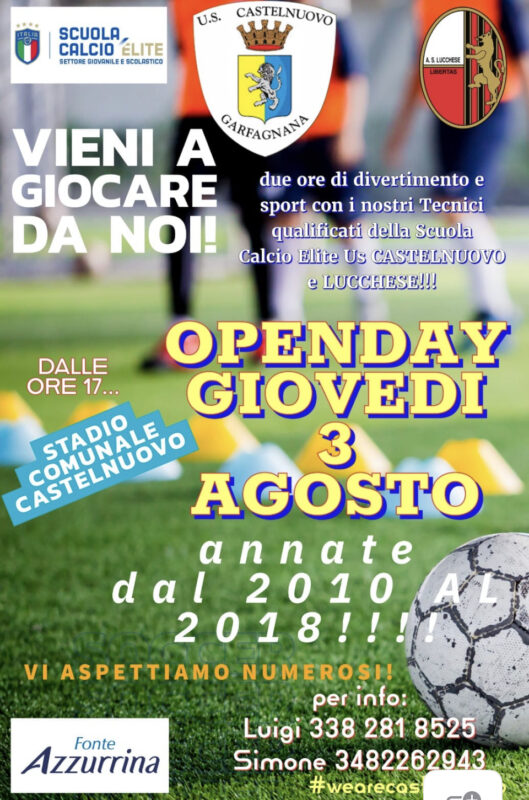 CASTELNUOVO- Scuola calcio e settore giovanile al centro dell’attenzione e dell’impegno per la società dell’U.S. Castelnuovo Garfagnana che sta lavorando senza sosta per arrivare pronta all’inizio della nuova stagione sportiva. Dopo il successo dei primi due open day rivolti a tutti i giovani e giovanissimi, il primo a Castelnuovo e il secondo a Gallicano, ce ne sarà un terzo giovedì prossimo, 3 agosto, presso lo stadio “Comunale Vecchio” di Castelnuovo. L’inizio è previsto per le 17 e fino alle 19, e sarà aperto alle fasce di età dal 2010 al 2018. Ci saranno pertanto sia i bambini che già giocano a calcio nelle squadre gialloblu sia nuovi bambini che vogliono provare ad avvicinarsi a questo sport.