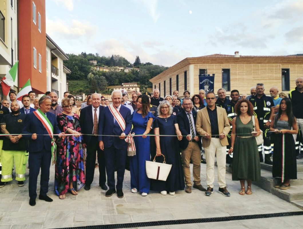 Al taglio del nastro della nuova piazza, con le note della filarmonica G. Verdi di Castelnuovo, tutta la giunta al completo, alcuni sindaci della Garfagnana e anche il governatore della Regione Toscana Eugenio Giani.