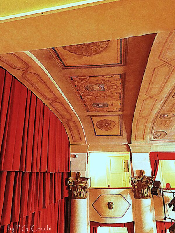 Nella serata già si era avuta della musica e ora occorreva che il sipario si alzasse per una recita ma quello non si muoveva. Tutti volevano vedere i filodrammatici ma il telone non saliva. Prima notizia interessante sta nel particolare di come si aprisse il sipario, ossia, che non era a scorrimento orizzontale ma saliva sino a scomparire in alto. Andando avanti si legge che tutti erano eccitati dall’idea di vedere lo spettacolo tantoché i presenti scoppiarono un fragoroso battimano, poi urli e uno strepitio indiavolato, ma il sipario non saliva. Tutti a urlare al povero macchinista, si dice in possesso di una forza erculea: tira, tira! Tira molla e tira! Il telone però non si muoveva e non ne voleva sapere di “andarsi a nascondere alla soffitta per scoprire il palco scenico”. Dalla cronaca di questa involontaria farsa si apprende ancora che dopo i vari evviva diretti ironicamente agli accademici: “W l’Accademia”, dopo oltre dieci minuti e più, “il telone teneva il posto che da anni aveva conquistato e non voleva abbandonare la sua comica posizione”. A queste parole che abbiamo or ora letto, si ha la seconda notizia interessante circa il Teatro, ossia, che molto probabilmente da qualche anno non si erano date rappresentazioni, perché si nota che il telone da qualche tempo avesse conquistato la chiusura. Invece, in una piccola nota dell’ottobre di questo 1881, si apprende che si era messo mano al Teatro per alcune ignote riparazioni e che l’Accademia ora aspetta con ansia un’altrettanto ignota compagnia filodrammatica.