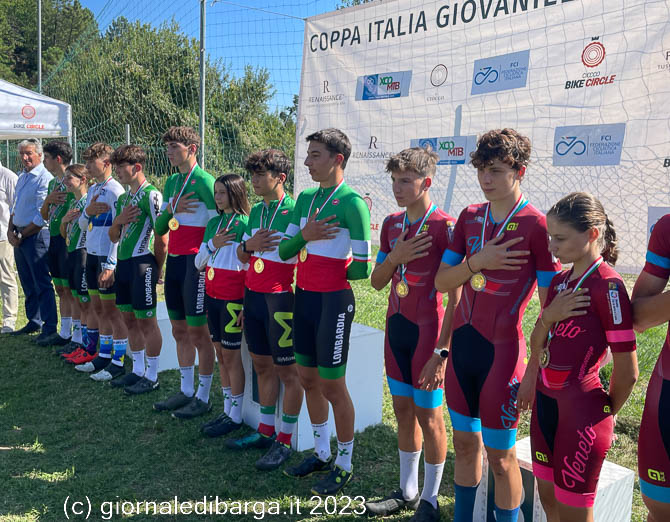 Subito dopo la gara che ha inaugurato la due giorni del Ciocco, la consegna delle medaglie ai primi tre classificati e delle maglie tricolore alla formazione della Lombardia. Premiazioni e medaglie ai vincitori effettuate dal presidente della FIC Cordiano D’Agnoni e dall’assessore Lorenzo Tonini per il comune di Barga.