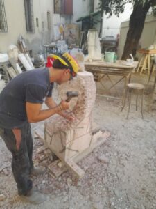 Un progetto che vede l’ingresso dell’arte a decorare i diversi centri abitativi. Al murale appena realizzato, infatti, si affiancherà la scultura in marmo – ancora in fase lavorazione – che nei prossimi giorni troverà collocazione definitiva nella Piazza della Chiesa a Sassorosso. All’opera – intitolata “Scalpellini al lavoro” – sta lavorando Filippo Checchi con il professor Francesco Roviello.