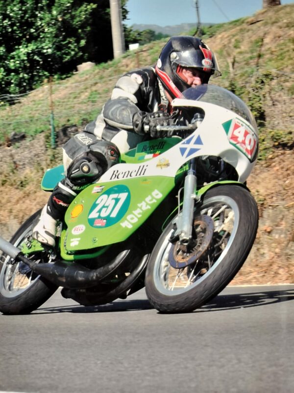Paolo corre nel gruppo 5 classe TT 250 con una Benelli 250. È il nonno di questa categoria, si potrebbe dire, ma a 66anni si è messo dietro un pilota che ha venti 20 anni meno ed al terzo posto un altro di 30 anni meno.