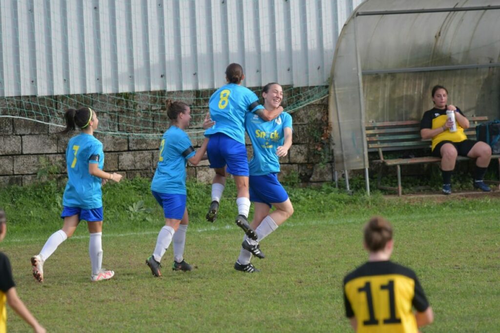 Pronti via e dopo 12 minuti Moni porta in vantaggio le ragazze gialloblu con un tiro dai 20 metri che si insacca per l’1-0. Dopo 10 minuti le ospiti sfruttano un rigore per riportarsi subito sull’1-1. Le locali continuano ad attaccare a testa bassa, ma non riescono nella prima frazione a tradurre in rete la grande mole di gioco creata.