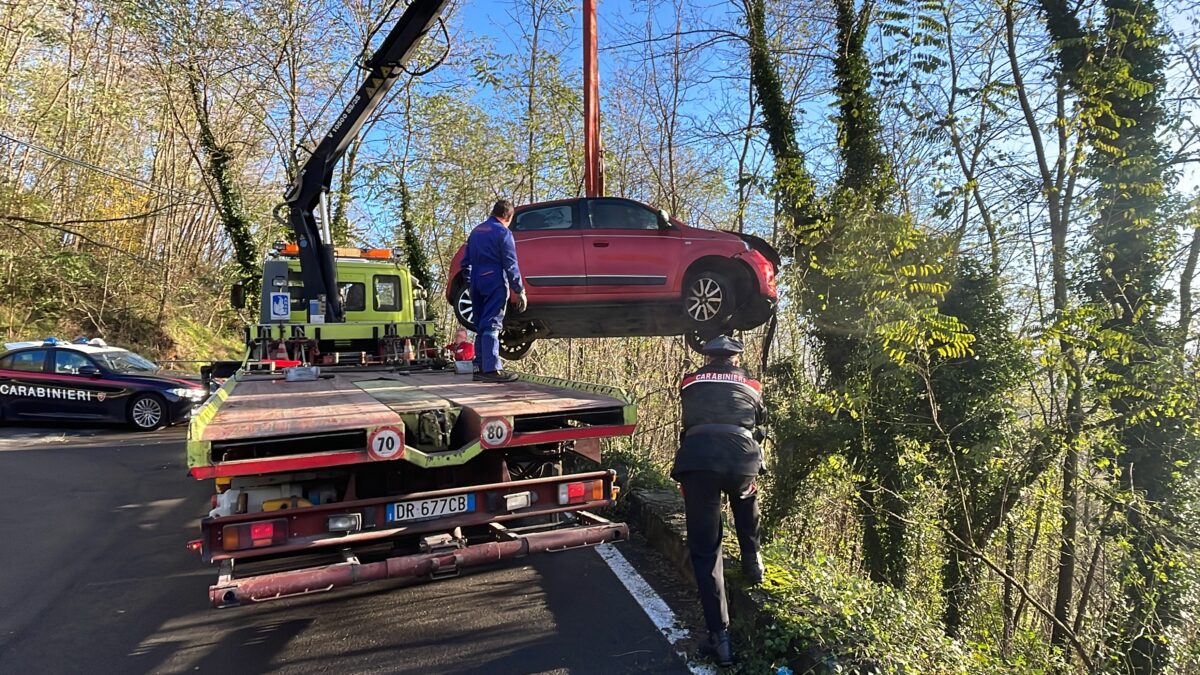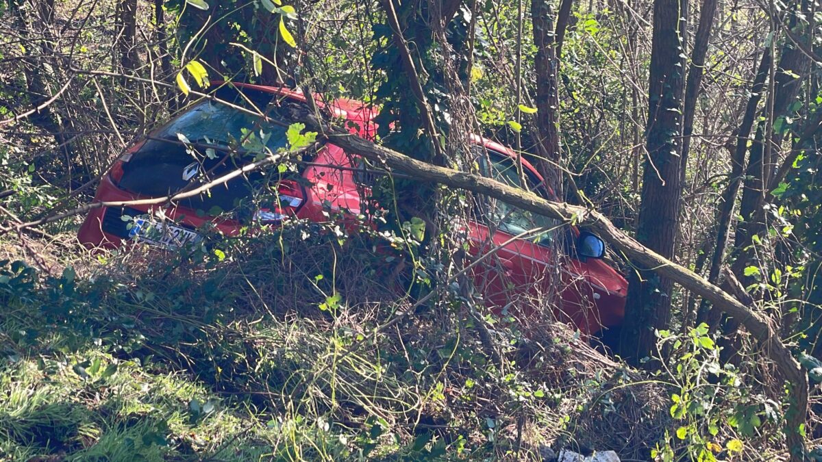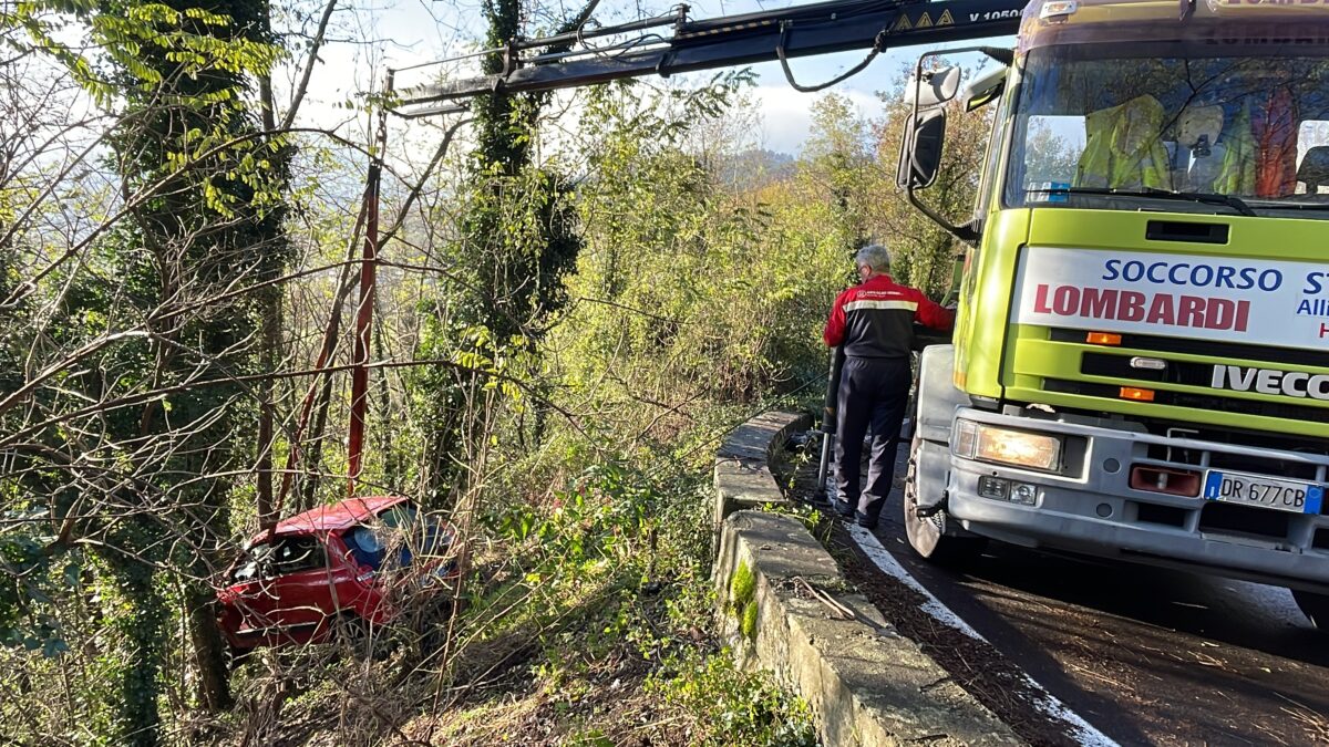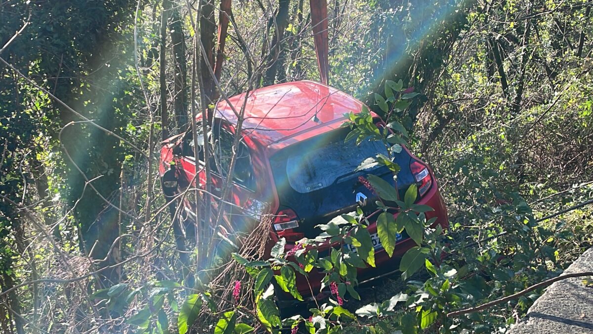 Il fuoristrada è avvenuto su un tornante stretto nei pressi della località “La parata”. L’auto, una Twingo, ha letterarlmente saltato il basso muretto a margine della carreggiata e dopo aver scivolato per alcuni metri si è fermata tra le piante.