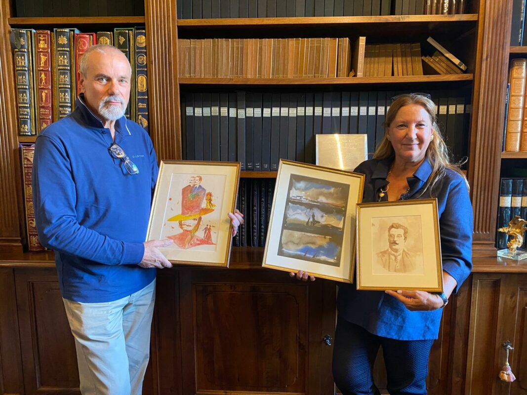 Il babbo Massimo Giusti, nell’incontro di ieri in Fondazione, ha donato tre opere da lasciare esposte in maniera permanente alla Fondazione Ricci, che faranno parte della prossima esposizione della primavera del 2024: un ritratto di Puccini e due acquerelli liberamente ispirati a opere di Puccini e Fenoglio.