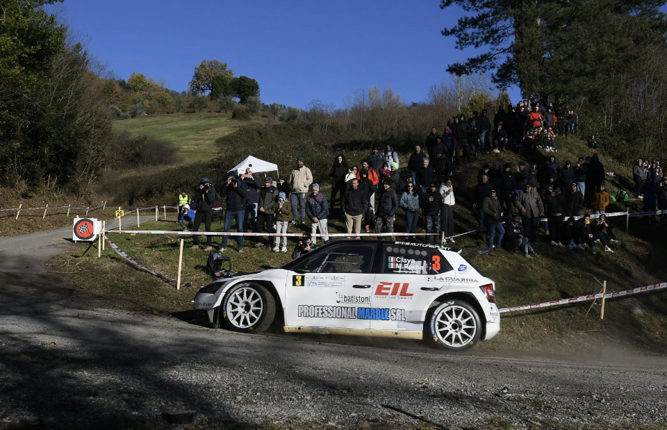 IL CIOCCO – Il lucchese Rudy Michelini, con Luca Spinetti alle note, perfettamente assecondato dalla Skoda Fabia Evo Rally2 cucitagli addosso da MM Motorsport e gommata Pirelli, ha imposto la sua legge sulle otto prove speciali della prima tappa de Il Ciocchetto Event, il “rally di Natale” disegnato sulle strade del comprensorio della Tenuta Il Ciocco e disputatosi ieri con la cornice di una bella giornata di sole. Con grande autorevolezza, Michelini ha vinto tutti gli impegni cronometrati della giornata, chiudendo la prima tappa con un vantaggio di oltre 15 secondi, al termine di 20 km di speciali totali, sul secondo classificato. Piazza d’onore che è rimasta, fin dal via, saldamente nelle mani del massese Gabriele Ciavarella, con Michele Perna a fianco, che realizza una doppietta di Skoda Fabia Rally2 siglate MM Motorsport (questa però gommata Michelin) in vetta alla classifica. Ciavarella è riuscito anche a contenere gli attacchi della terza Skoda Fabia Evo Rally2 finita a chiudere il podio, quella made in Gima Autosport e gommata Michelin, nelle mani del reggiano Gianluca Tosi, con Berni, che si piazza terzo ad un soffio, meno di un secondo, dalla seconda posizione. Diciotto secondi separano il pluricampione locale Paolo Andreucci, con Maurizio Bimbi alle note, dal vertice della classifica, impegnato a trovare il giusto set-up con la Citroen C3 Rally 2 Sportec gommata MRF, che ritrovava dopo un anno esatto dalla vittoria del “Ciocchetto” 2022. La riscossa di Andreucci, come degli altri pretendenti alla vittoria è attesa per la seconda tappa. Più staccato il resto della concorrenza, un terzetto racchiuso in meno di tre secondi, capitanato dall’elbano Andrea Volpi, con Nesti, seguito dal locale Federico Santini, con Barsotti, e dal parmense Fabio Federici, con Badinelli, tutti su Skoda Fabia Rally2. La sfida in famiglia Marcucci sulle strade di casa, nel vero senso della parola, vede, nella prima tappa il figlio Luigi, con Vellini (VW Polo GTI Rally2 HK Racing) precedere, di poco più di un secondo, papà Andrea, con Gonnella, a bordo di una Skoda Fabia Evo Rally2 MM Motorsport. Ottimo tredicesimo assoluto al debutto con la nuova Ford Fiesta ST Rally3 HMI il giovane Matteo Fontana, con Arnaboldi, autori di tempi di valore, pur con una ancora sommaria conoscenza della piccola turbo 4 ruote motrici.