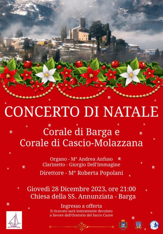 BARGA – Stasera, giovedì 28 dicembre, alle ore 21, nella Chiesa della SS. Annunziata a Barga si terrà il Concerto di Natale delle Corali di Barga e di Cascio-Molazzana, dirette dal M° Roberta Popolani e accompagnate al clarinetto da Giorgio Dell’Immagine e all’organo dal M° Andrea Anfuso.