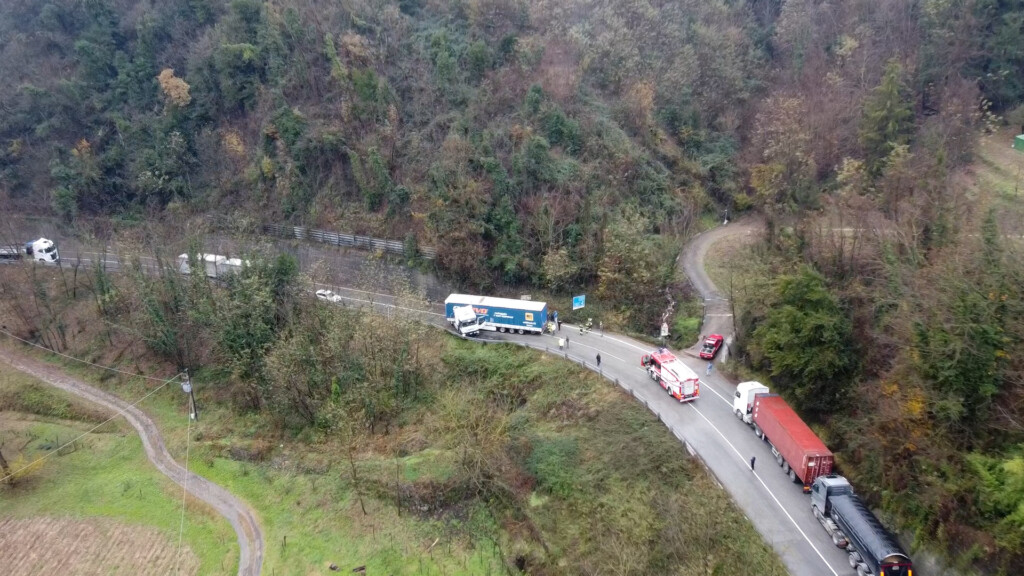 Il mezzo pesante che proveniva da Castelnuovo si è intraversato nell’affrontare la curva che si incontra prima di Ponte di Campia. Sul posto oltre ai Vigili del Fuoco, i Carabinieri, la Polizia Locale dell’Unione die Comuni della Garfagnana e Polizia provinciale che hanno dovuto davvero lavorare non poco per risolvere l’ingorgo del traffico e per deviarlo successivamente sulla Provinciale di Monteperpoli.L’incidente che fortunatamente non ha coinvolto altri mezzi è stato è causato senza dubbio dalla perdita di aderenza del rimorchio che ha poi fatto perdere il controllo della motrice. Come detto da alcuni camionisti, un incidente singolare; casi come questo possono accadere quando le condizioni dell’asfalto sono particolarmente insidiose ed il mezzo si trova a pieno carico.Il fatto è avvenuto verso le 10 del mattino e la regolare viabilità è stata ripristinata alle 12,30 quando grazie all’intervento dei Vigili del Fuoco e dei loro mezzi, si è riusciti a rimuovere il TIR.