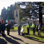 L’alpino Bruno Pieroni reggeva il gagliardetto degli Alpini di Barga, il cui Gruppo è intitolato alla Medaglia d’Argento al V. M. Tenente Franco Leo Lombardini, che eroicamente lasciò la sua vita a Valniki nel febbraio 1943 durante la Campagna di Russia. Presente anche la bandiera dell’Ass. Nazionale Combattenti e Reduci, retta dall’Artigliere Alpino Andrea Mazzolini. La cerimonia ha visto la presenza delle forze dell’ordine con due Carabinieri della locale Stazione, dei Vigili Urbani e delle delegazioni dell’Associazione d’Arma, assieme all’Associazione. Marinai d’Italia. Erano presenti anche i componenti dell’ANPI di Barga.
