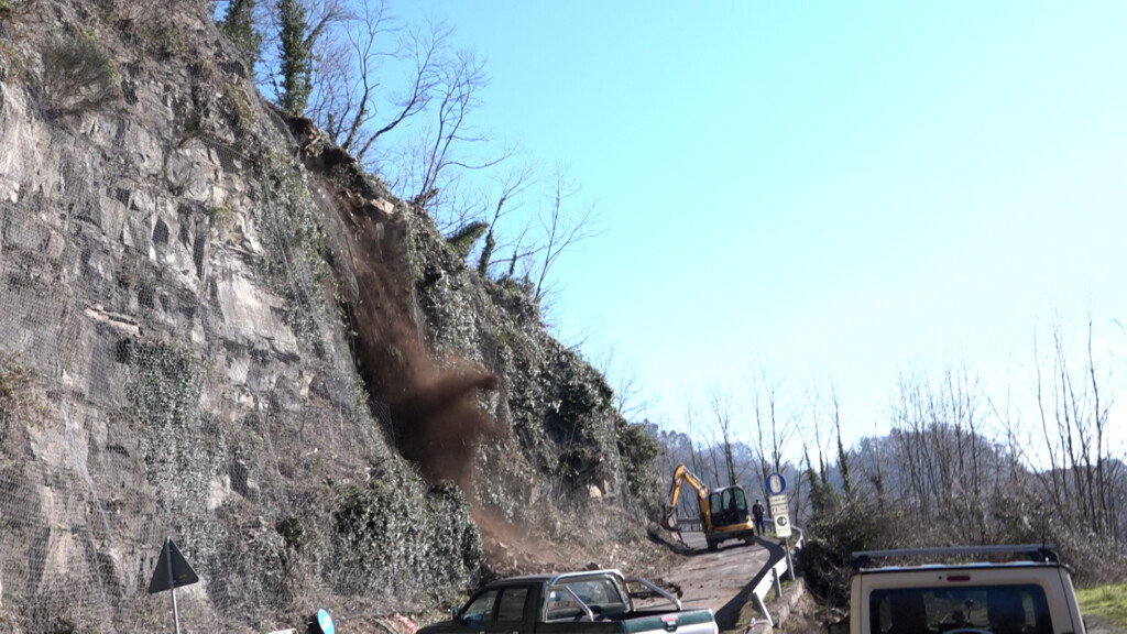 Chiusa per lavori la strada comunale per Fiattone nel comune di Gallicano; interventi resi necessari a causa di un movimento franoso a pochi metri dal bivio con la strada di fondovalle. Questa sponda era già stata oggetto di un intervento e sicuramente grazie al posizionamento delle reti para-massi si è evitato che accadesse qualcosa di grave. Ecco il momento del taglio dei cavi che trattengono il materiale franato e rimasto all’interno della rete.