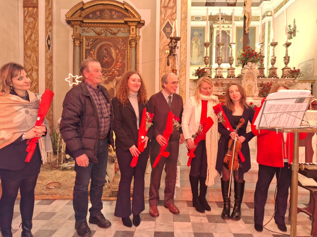 “Tu scendi dalle stelle”, Stille Nacht” (Notte silenziosa), “What Child is this?” (Che bimbo è questo?), “White Christmas” (Bianco Natale), ma anche canti tradizionali come “Amazing Grace” (Grazia Meravigliosa), e “Happy Christmas” (Buon Natale) di John Lennon. Inoltre Sofia Piagentini ha eseguito al violino con bravura l’Ave Maria di Gounod/Bach e l’Ave Maria di Schubert con l’accompagnamento alla chitarra classica di Peter Coppo. Rachele ha cantato egregiamente in stile lirico il canto Natalizio “Oh Holy Night” (O Notte Santa) che fu riproposto in lingua inglese da Céline Dion e Mariah Carey ed inoltre insieme alla mamma Maura Furia ha proposto “Che Natale sei” di Giorgio Panariello accompagnandosi al pianoforte. Come omaggio poi alle tradizioni del paese di Gorfigliano e al suo famoso poeta e scrittore Luigi “dal Bozzo”, sono state eseguite da Angelica, Maura e dallo storico maggiante di Piazza al Serchio Nando Mori alcune ottave, tratte dal Maggio della “Sacra Rappresentazione della Natività e della Strage degli Innocenti”, che fu messo in scena dai maggianti negli anni ‘80. Il concerto si è concluso con alcune canzoni composte dallo stesso Peter Coppo sulle poesie del Luigi dal Bozzo, cantate da Angelica Casotti e da Maura Furia, e con la famosa colonna sonora “Smile” tratta dal film “La vita è bella”, cantata da Rachele Bertei.