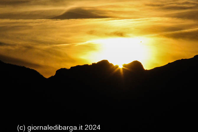 BARGA – Niente afflussi record di appassionati, ma comunque un buon numero di persone si sono ritrovate sul sagrato del Duomo nella speranza di assistere allo spettacolo del Doppio tramonto di Barga, con il sole che tramonta due volte dietro il Monte Forato, grazie al suo passaggio attraverso il grande arco naturale della montagna. Il giorno ideale era proprio oggi, 30 gennaio, anche se è ancora possibile separare di rivederlo domani 31 gennaio e così era stato anche il 29; ma sia ieri che oggi il tramonto dietro l’arco ciclopico è stato in parte rovinato dalle nuvole e dalla foschia all’orizzonte, che hanno reso meno nitido lo stagliarsi del sole.