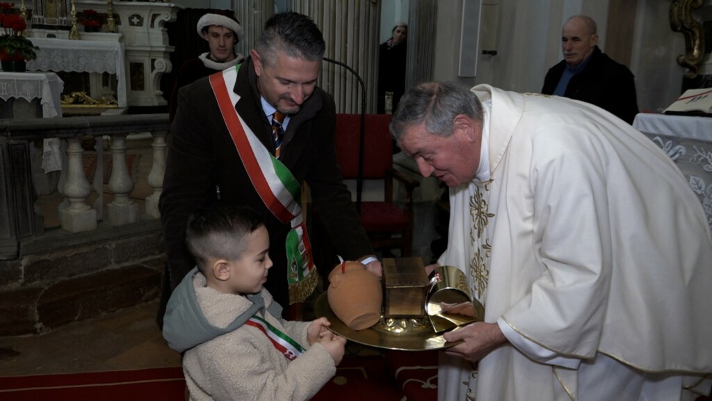 La Festa del regalo a Castiglione Garfagnana è un rito antico che si ripete ormai da quasi 400 anni. In questo inizio di 2024, è stato il giovanissimo Tommaso Pancetti il 393esimo bambino chiamato a portare il regalo alla Madonna del Rosario consegnandolo nella mani del parroco don Giovanni Grassi.
