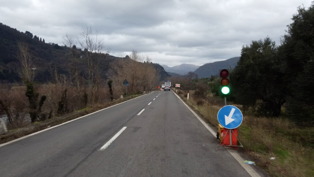 Salendo, lungo la diritta di Anchiano, un altro semaforo, a seguito di lavori in corso lato fiume Serchio; poi, superato Località Socciglia eccone un altro; questo davvero storico perché sono anni che è lì a ricordarci che un semaforo può salvare la vita, ma anche farti perdere tempo; tanto tempo.