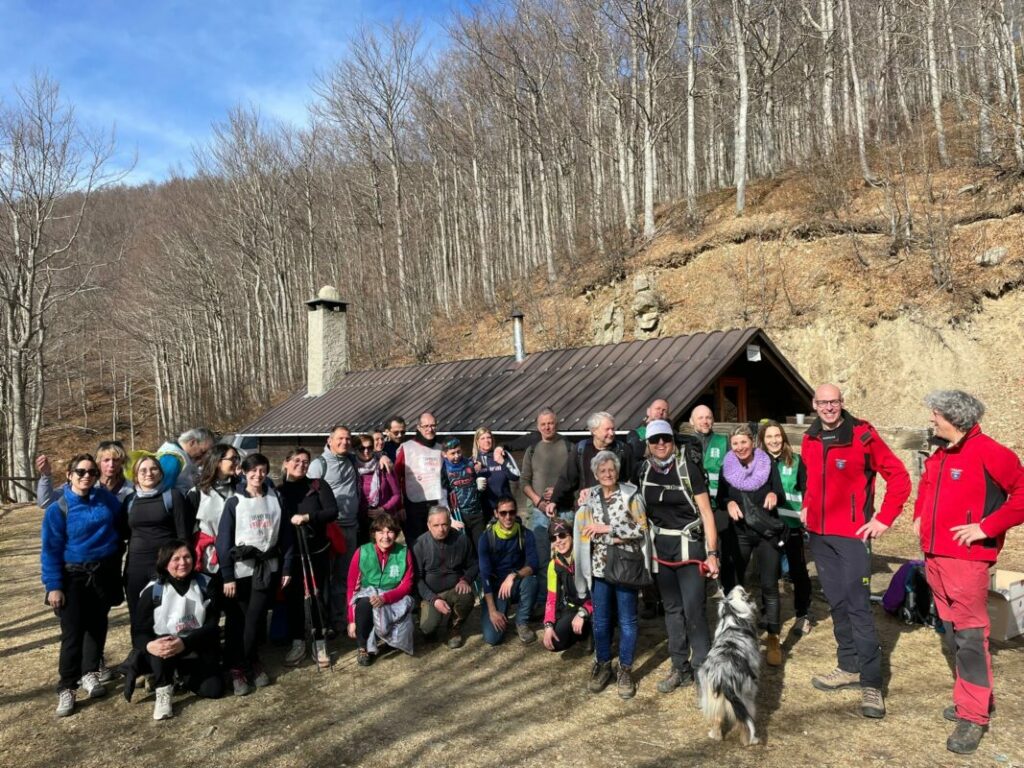Mancando completamente la neve la ciaspo-trek, con una trentina di partecipanti, si è trasformata in una bella passeggiata che ha raggiunto il Bivacco della Caciaia dove ad attendere il gruppo erano i soci del Cai di Barga e di ASBUC Barga con un robusto rinfresco. Poi ancora più in alto fino ad arrivare alla “nuda” ed infine sulla Cima dell’Omo.