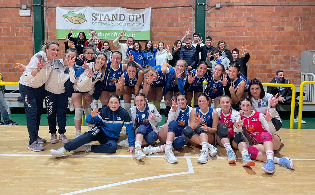 Nel terzo set sembra essersi invertita la rotta e sono loro che grazie a buone battute ci lasciano un po’ attonite per qualche scambio, è necerssario non farle scappare via, ritrovare la concentrazione, un time out per chiarirsi le idee e torniamo in campo per raggiungere e sorpassare le avversarie con un gioco veloce e molto efficace. Siamo sul 2-1 per noi.