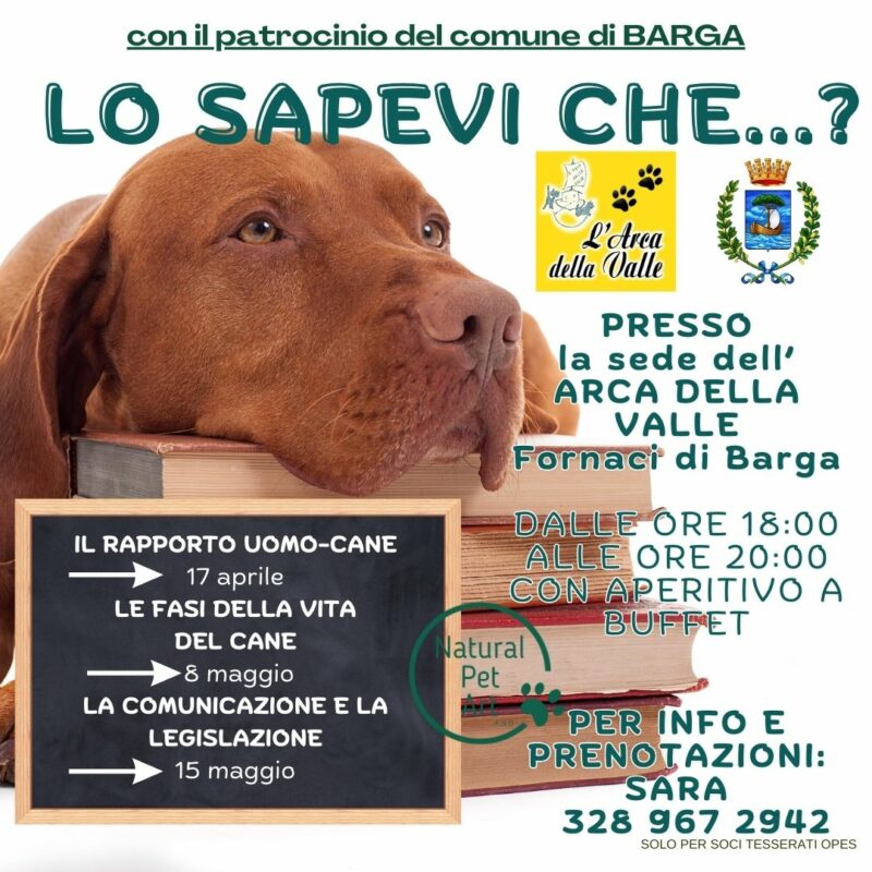 FORNACI – “Lo sapevi che?”, ecco una serie di incontri didattici che si terranno presso la sede dell’Arca della Valle a Fornaci di Barga, per parlare dell’amicizia, ma non solo, con il migliore amico dell’uomo, il cane. Partendo dall’amicizia più antica della storia, il racconto di come è nata, come si è evoluta, quali sono i bisogni del cane e come si sono adattati alla nostra società; ma anche delle varie fasi della vita del cane e come muta la relazione con noi , oltre alle principali cause dei problemi comportamentali. Ci sarà spazio anche per la legislazione e per capire quali sono diritti e doveri per una convivenza in equilibrio con tutti.