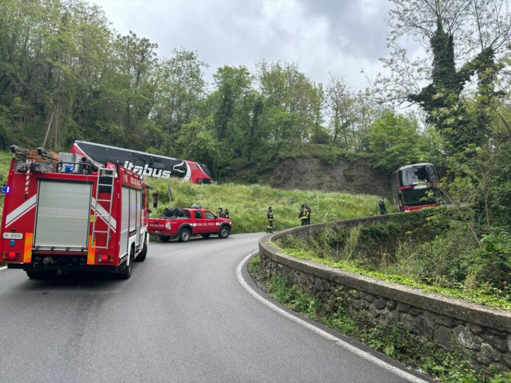 LOPPIA – Aggiornamento delle 16. Attorno alle 15,45 ii Vigili del fuoco sono riusciti a disincastrare il bus. È stato deciso però, visto alcuni danni riportati, di far risalire gli studenti trasportati su un altro mezzo inviato a Fornaci e non di trasferirli con il solito bus a Lucca.