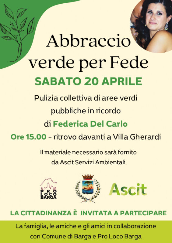 “Federica ci ha lasciati nel pieno della sua giovinezza. Chi la conosceva sa quanta passione, per tanti anni, abbia messo al servizio della sua Barga, a cui era molto legata. Non solo come cittadina con una forte personalità e un grande senso civico, ma anche come rappresentante della Pro Loco di Barga, si era data da fare per mettere in circolo nuove idee ed energie che animassero il territorio, lo rendessero più vivo, attento alla voce delle nuove generazioni – , spiegano gli organizzatori – Il 20 aprile, per ricordarla, ci rimboccheremo le maniche per fare qualcosa di bello e utile per Barga, tutti insieme, all’insegna della sostenibilità. E siamo sicuri che in qualche modo lei sarà con noi. I familiari, le amiche e gli amici di Federica invitano i cittadini di tutte le età a partecipare”.