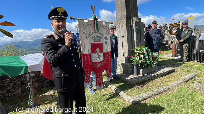La cerimonia al Parco della Rimembranza, con la presenza delle autorità civili e militari, a cominciare dal comandante della compagnia CC di Castelnuovo, Maggiore Biagio Oddo e dal responsabile dell’ufficio arruolamento e attività promozionali del corpo militare con sede a Bagni di Lucca, Tenente Maurizio Lucchesi