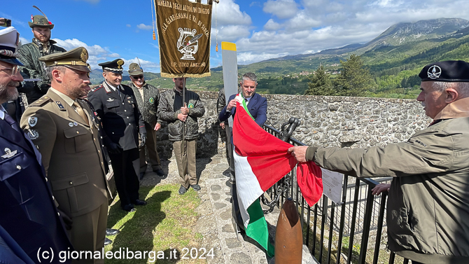CASTIGLIONE DI GARFAGNANA – Nel ventesimo anniversario del recupero del Parco della Rimembranza di Castiglione Garfagnana, nell’ameno borgo garfagnino una cerimonia in cui è stata inaugurata l’altana dei cimeli di “Cielo-Mare-Terra” grazie alle donazioni venute da Marina, Aeronautica ed Esercito, ma si è voluto anche onorare in modo ancor più significativo i caduti di tutte le guerre: accanto alle lapidi ed alle targhe già presenti, sono state scoperte due targhe dedicate ai caduti dell’Arma dei Carabinieri ed ai caduti tra i militari della Croce Rossa Italiana.
